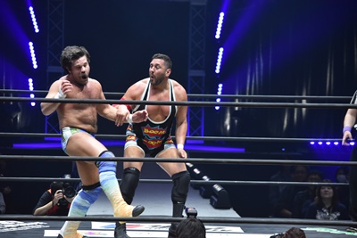 ライアンは手四つに来ようとしたカバナの両手首をつかみ(右写真)、