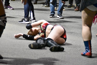 宇宙銀河戦士ソフィア!(左写真)竹下と組んでDAMNATIONと闘うことに。