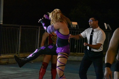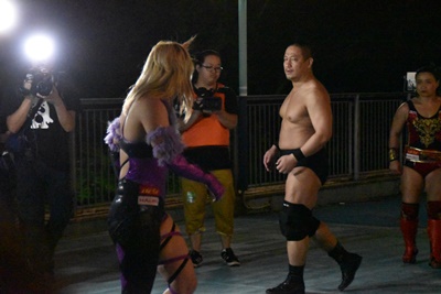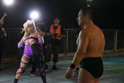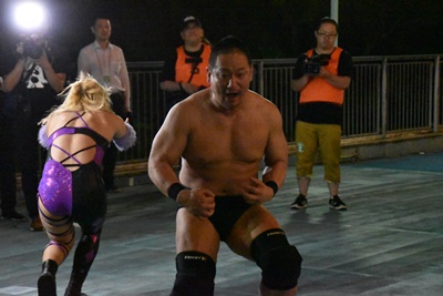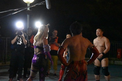 高木三四郎&里村明衣子&一般人・澤宗紀 vs 男色ディーノ&赤石イサミ&カサンドラ宮城