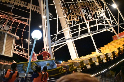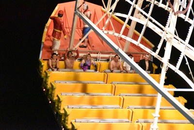決戦の場であるフライングパイレーツに向かう(左写真)。