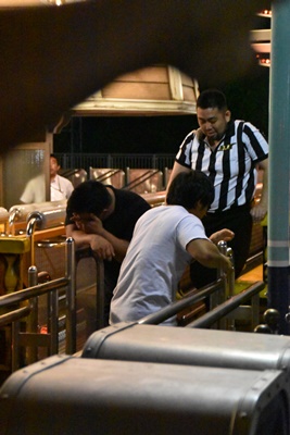 ゲートまで来て拒否し出す高木、イサミと澤が押し込む(右写真)。