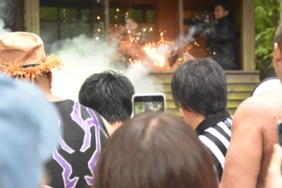 文字通りの「ファイヤー!」(左写真)
