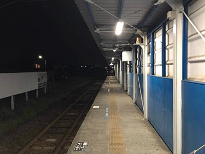 単線、ホームも片側。23時21分の最終電車で鹿児島中央に。