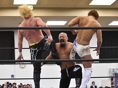 飯塚&タイチ組に苦しめられたものの今日もゴールデン☆ラヴァーズ勝利。時間短かったかな。