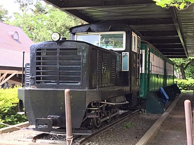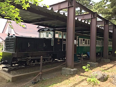 外には沼尻軽便鉄道(1968年まで猪苗代の隣の川桁〜沼尻間を走っていたそうだ)の機関車とトロッコ客車が展示。