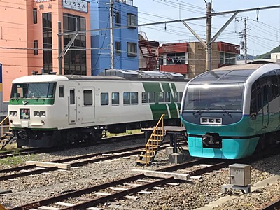 踊り子とスーパービュー踊り子。さらに「IZU CRAIL」も隣のホームに入線してきたがカッコよかった。行きに伊豆急行の「黒船電車」ともすれ違ったけど、それもいずれは乗ってみたい。