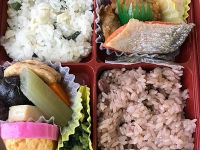 朝食は大宮駅で買ったおこわ幕の内。別に大宮駅で買う必要なかったな。