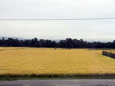 目が覚めると福島を過ぎて山形新幹線に。すっかり黄金色。