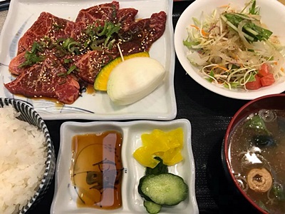 山形駅近くの「かかし」(昔行ったことあり)で山形牛ロース定食。1500円。