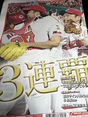 バスに乗る直前に東京では買えなかったスポニチのカープ優勝特集号が買えた。