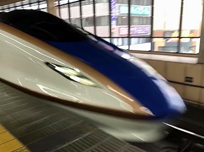 8時半に出て新宿で埼京線に乗り換えようとすると、恵比寿で線路に人立ち入りがあったとかで10分の遅れ。「これ以上遅れが広がる可能性」とか言ってるので来たのにすぐ乗って大宮に。結果かなり早く着いて、無事9時46分発のかがやき507号に乗れた。