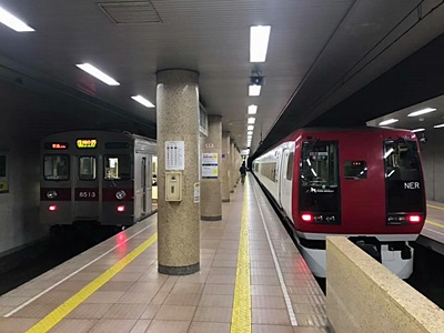 10時46分長野着。FC優先入場に間に合わせようとしたらすぐに長野電鉄に乗り換えなければいけない。右の特急「スノーモンキー号」(モロNEXのまんま)は小布施には止まらないので左の各駅に乗って11時4分の発車を待つ。