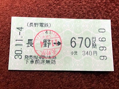 長野から小布施までは670円。しかし小布施で降りた際に後ろの客と駅員の会話で、わざわざ買わなくても週末パスで乗れたことを知る。