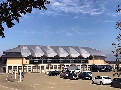 小布施中学校校舎。渡瀬の故郷は渋温泉とかがある山之内町だそうだ。そういえば当初は前泊してから行く予定だったなあ・・。