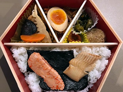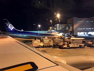 5時前に起きて、6時20分のリムジンバスで羽田に。空港で朝食にしようかと思ってたが、SFJの発券機が第1ターミナルの一番端なのでめんどくさくなって結局いつものやまやの空弁。