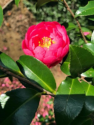 帰るバスが16時4分までないので15時40分までグリーンパークにいて、歩いてバス停に。途中のツバキ。