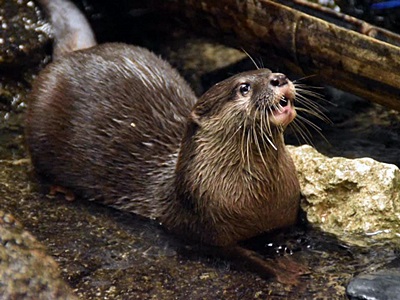 上の階で展示してるピントロングがしばしばカワウソ舎を通過、見てる人が「あれは何?」と驚く。中には「(カワウソの)お父さんが来たよー。お父さんは大きいねー」と子供に大嘘つく母親も。
