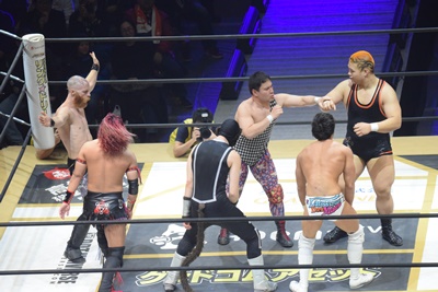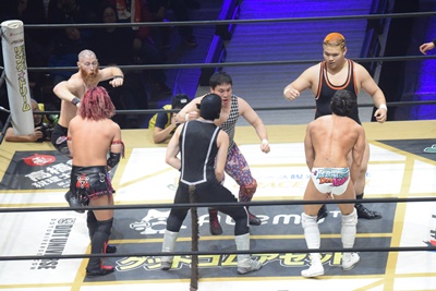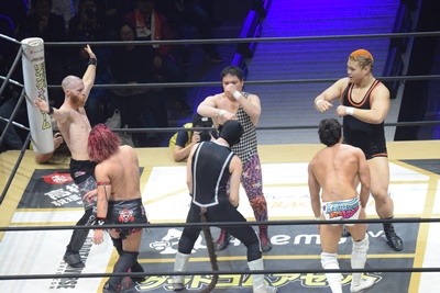 勝俣瞬馬&上野勇希&スペースモンキー vs アントーニオ本多&吉村直巳&ジェイソン"ザ・ギフト"キンケイド