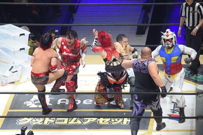 高木三四郎&長与千種&伊東竜二 vs 高尾蒼馬&マッド・ポーリー&彩羽匠