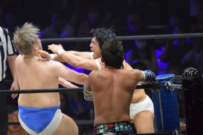 まなせもやり返す(左写真)。ディーノと大和にタッチ。