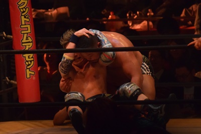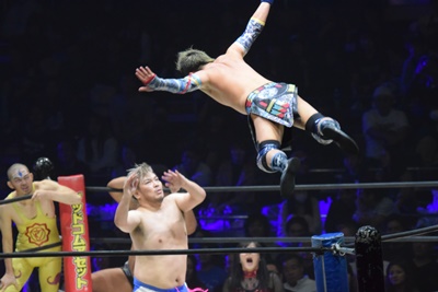 みずぴょんコーナーからダイビングボディアタック(右写真)。