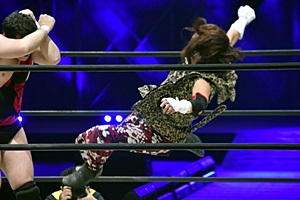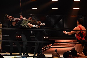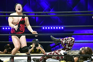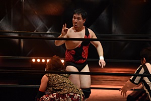 松井レフェリーに誤爆(右写真)。