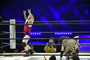 アントーニオ本多(23分50秒 両者TKO)DJニラ(右写真)