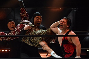 アントン2発目はキャッチしてドラゴンスクリューに(左写真)。