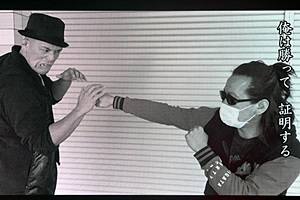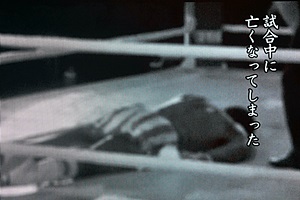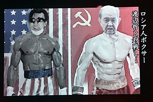 「俺の親父である渡辺哲は三十年前のあの試合のあとアポロ・ニラの盟友であるロッキー川村と対戦し負けてしまった」(左写真)それでロッキー川村が。