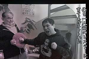 「ボロボロの極貧生活の中、男手ひとつで俺を一人前のレスラーに育てあげてくれた」(左写真)