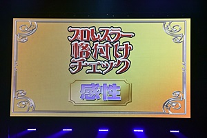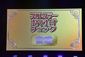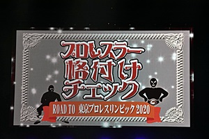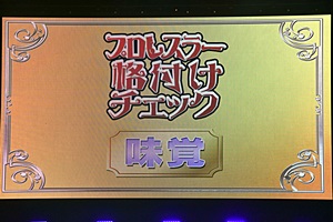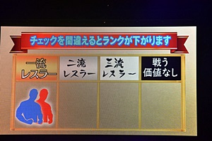スクリーンに「プロレスラー格付けチェック」(右写真)。ナレーションは清水愛。