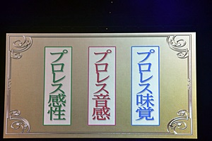 ジャンルは「プロレス味覚」「プロレス音感」「プロレス感性」、この3つから1問ずつ出題(右写真)。
