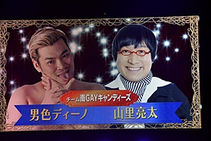 出場チームは4チーム。まずは男色ディーノと山里亮太のチーム南GAYキャンディーズ(左写真)。