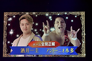 純烈・酒井一圭とアントーニオ本多のチーム全問正解(左写真)。