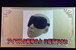 打たれる人間は山ちゃん、クロちゃん、酒井に決定。回答する人間はアイマスク着用して音だけで判断(左写真)。