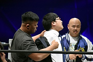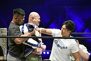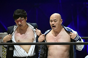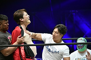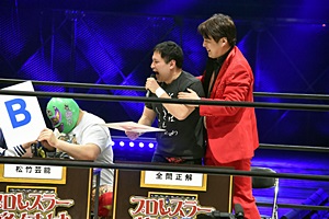亜門「お前らひょっとして、試合したくないからこのくだりで全部自分たちの出番終わらせようとしてないか?正々堂々、試合でどちらが一流レスラーか決着をつけろ!」