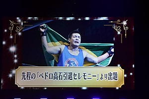 先ほど行われたペドロ高石引退セレモニーから出題(左写真)。