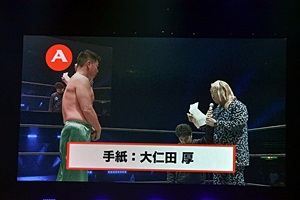 悩む回答者に亜門から大仁田の手紙に大事な言葉があった、とヒントが。それは「敵にお尻を見せない」(左写真)、