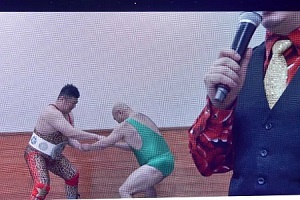 亜門「というわけで、この試合のルールは『両チームのキャプテンの肛門爆破をかけた60分一本勝負のタッグマッチ』に変更いたします!」(左写真)
