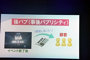 これに対し「後パブ」(事後パブリシティ)はイベント終了後に「開催しました!」と伝える行為(右写真)。