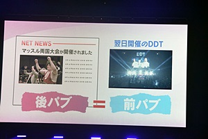 今回マッスルの後パブが翌日開催のDDTの前パブになる、と高木は考えた(左写真)。