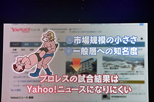 そもそもプロレスの結果は市場規模の小ささ、一般層への知名度の低さからYahoo!ニュースにはなりにくい(右写真)。