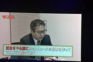 藤井「そうなんですよ。なので試合をやる前にネットニュースの記事を作っておいて、マスコミに配っておきます。」(右写真)