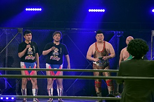 亜門「なるほど・・・純烈や山ちゃんやクロちゃんが出てくれるんだったらネットニュースで話題になるようなトピックを意識的に作って、それをリング上から発信していくべきなんですね。ただもう一生懸命に歌ったり試合してればいいんだと思ってました!」(右写真)