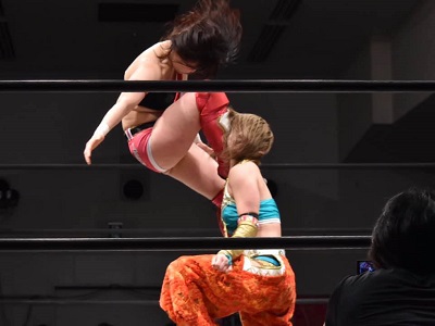東京女子は14時半開始。メインは山下が最強の挑戦者・坂崎ユカを退けた。これで9度目の防衛。次(5/3後楽園?)誰が挑戦するの?(中島になった)