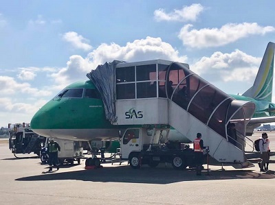 福岡行のFDAは使用機材の到着が遅れ10時50分発。満席。
