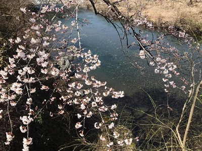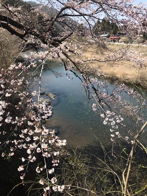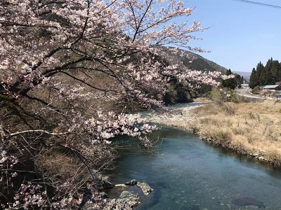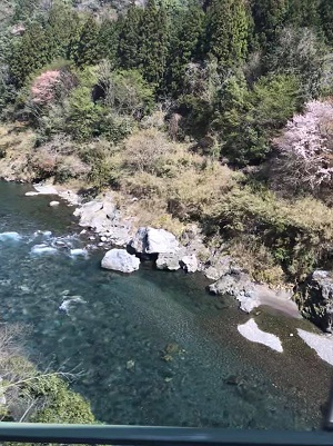 淡墨桜に行く途中の根尾川。水がきれい。桜も美しい。