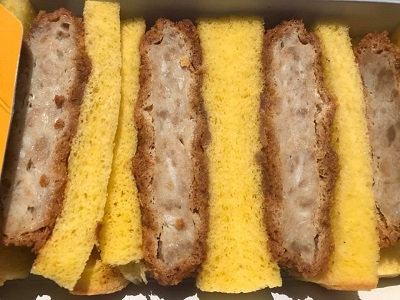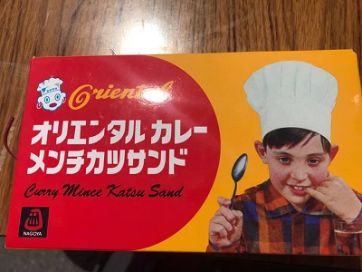 昼飯は岐阜駅で買ったオリエンタルカレーメンチカツサンド。