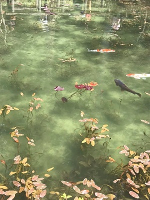 岐阜バスのワンデーパスをポケットに入れ出発。まず下川手から名鉄岐阜まで乗り、朝マックして名鉄岐阜バスターミナルからバスに乗ること50分、関シティターミナルでピックアップしてもらって「通称」モネの池に。透明度が凄い。睡蓮咲いてないとモネの絵っぽくはないか。