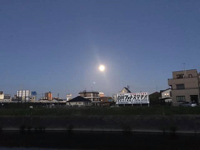 4時起き、4時40分出発。まだ満月が空に。
